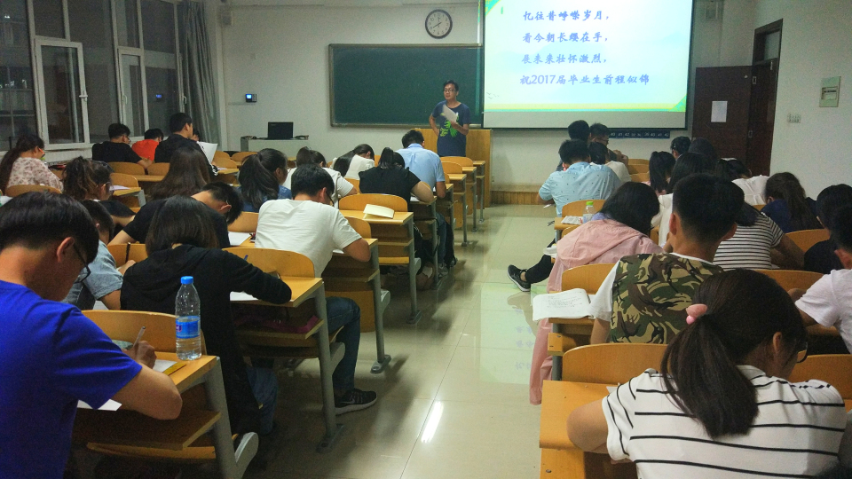 2017年6月5日晚7点30分,beat365官网于8教411室组织召开了由辅导员金志杰主持的毕业生文明离校会议,2014级全体专科毕业生到场并参加了此次会议。
