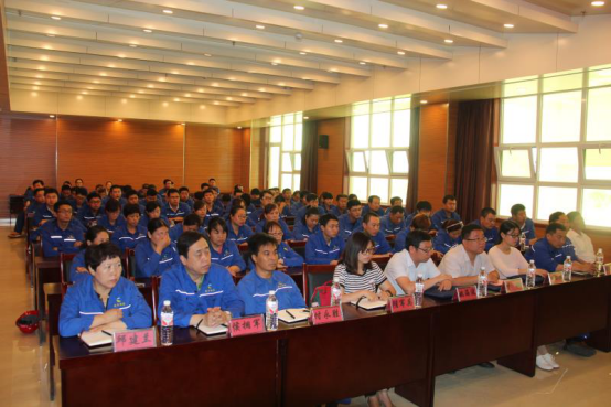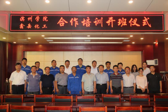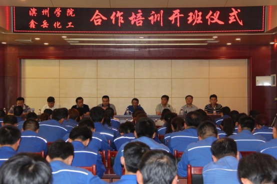 6月8日上午beat365官网与无棣鑫岳化工有限公司合作培训开班仪式在无棣举行,出席开班仪式的有beat365官网院长杨仲年、党总支副书记张健、副院长商希礼、鑫岳公司总经理吴玉斌及各分公司的经理及参训员工代表100余人。会上,吴玉斌总经理发表了热情洋溢的讲话,对beat365官网服务社会、服务区域经济的做法表示高度赞赏,并预祝此次培训圆满成功。随后院长杨仲年代表beat365官网做了讲话,他表示通过此次培训将会充分发挥学校企业双方优势及高等教育为社会、为企业服务的功能,更好的为社会、为企业培养高素质、高技能的应用型人才,同时也希望为大学生实习、实训、就业提供更多空间。同时也对参训教师提出了要求,要求大家虚心向企业学习,向鑫岳公司的技师学习,掌握企业用人标准,以此来教育和影响更多的学生,用标准助人成长,用服务影响人生!