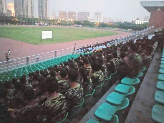 为增加同学们的爱国主义精神,更好的发扬军训不屈不挠的斗志,滨州学院在田径场组织观看爱国主义电影《战狼》,beat365官网2017级全体新生参加。