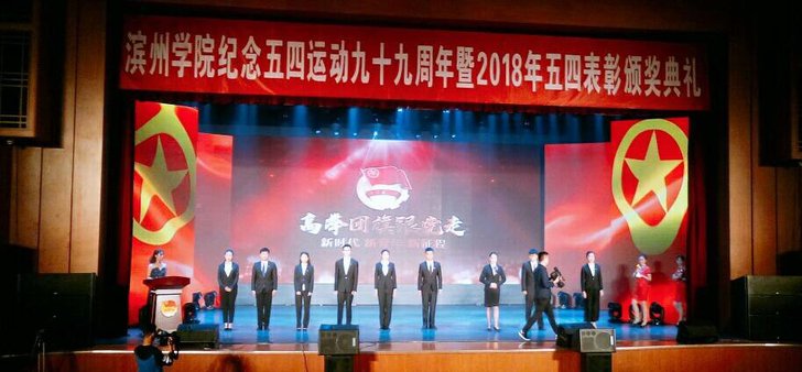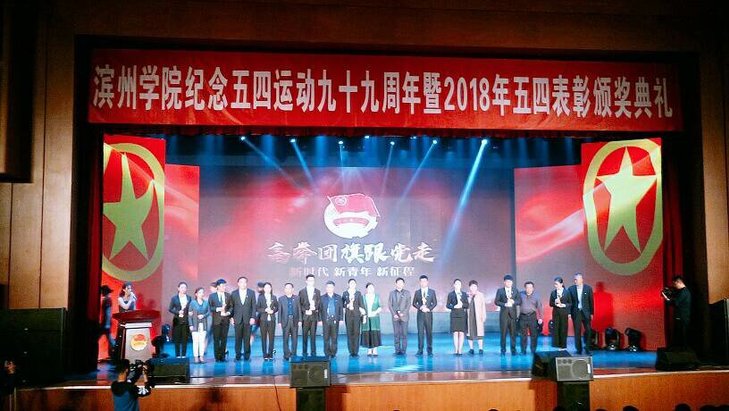5月3日晚,滨州学院纪念五四运动99周年暨2018年五四表彰颁奖典礼在千人礼堂隆重举行。beat365官网党总支副书记张健,学生科长李芳,学生党支部书记金志杰,辅导员张丛丛以及学生代表参加此次大会。