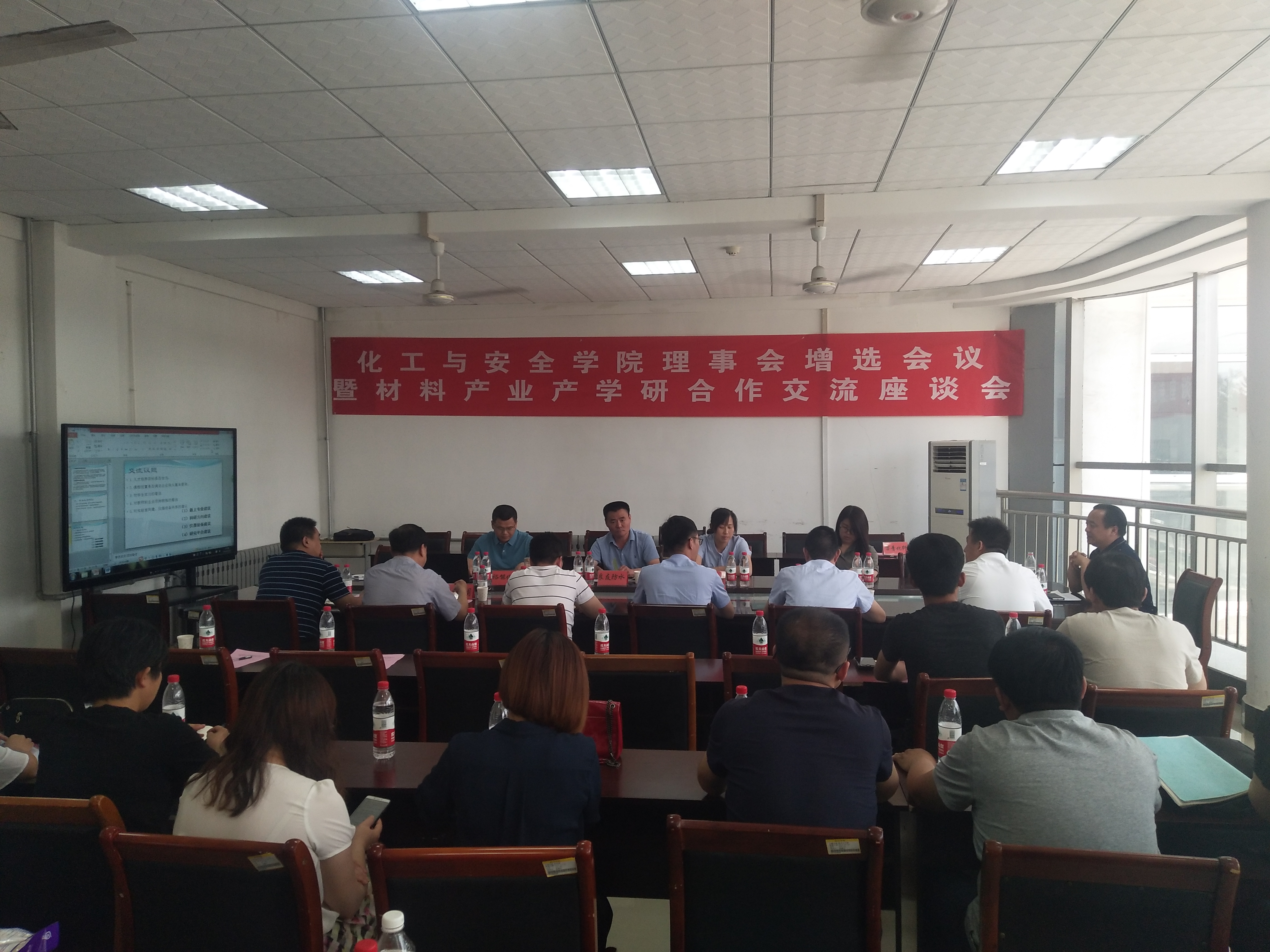 5月31日,滨州学院化工与安全学院理事会增选会议暨材料产业产学研合作交流座谈会在beat365官网化工与安全学院会议室举行。万通石油化工集团有限公司、航桥新材料科技有限公司、滨州裕能化工有限公司、山东创辉新材料科技有限公司、山东海逸交通科技有限公司、山东瑞辰新材料有限公司、滨州良友防水材料有限公司、山东盛太锆业资源有限公司等企业代表,滨州学院合作发展处副处长平金明和化工与安全学院师生代表出席了本次会议。