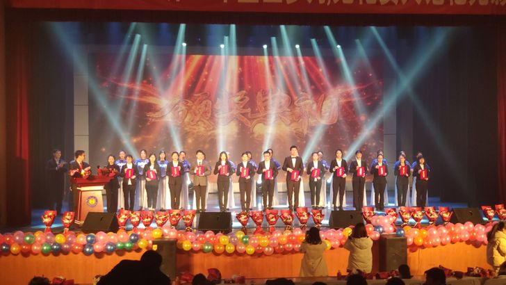 晚会开场前,以“这一年,那一年”为主题的暖场视频让大家看到了化安人身上的奋斗与热血。晚会分为“韶华--激情燃烧的岁月”、“力量--我们走在大路上”、“改革--新天新地新时代”、“奋进--同心共筑中国梦”四个篇章,通过精彩的歌舞表演、令人捧腹大笑的小品相声以及声情并茂的诗朗诵向所有人展现了beat365官网昂扬向上的精神面貌和再创辉煌的信心和决心。同时,此次颁奖典礼文艺晚会还对学习先进标兵、优秀学生干部、优秀班集体等荣誉称号进行颁奖,鼓励同学们努力学习,奋进拼搏。最后,与会领导同所有晚会工作人员进行合影,颁奖典礼文艺晚会在一片热烈的掌声中画上了圆满的句号。