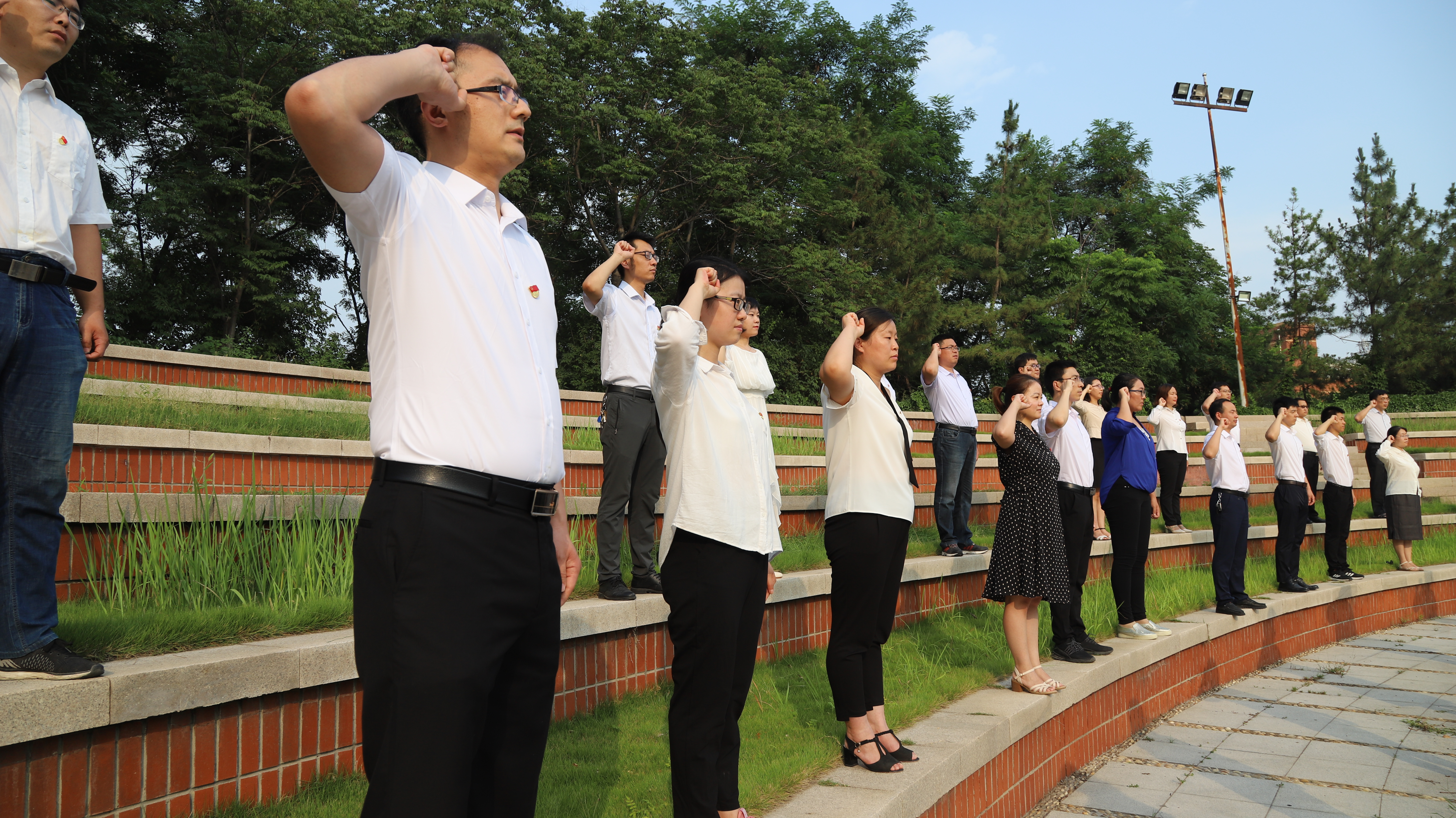 为了庆祝中国共产党诞辰99周年,6月29日下午,化工与安全学院在beat365官网水上广场组织全体教工党员开展“重温入党誓词,坚守初心使命”主题党日活动。