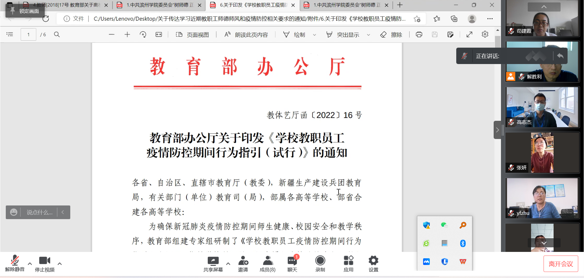 根据学校《关于传达学习近期教职工师德师风和疫情防控相关要求的通知》要求,化工与安全学院党总支5月3日上午利用学院党总支会议总支成员进行了集中学习,然后利用本周二下午的学院例会进行安排和布置,并通过各党支部组织全体教工认真学习相关文件和警示教育案例,按照学校统一安排开展组织教职工开展专项整治活动。