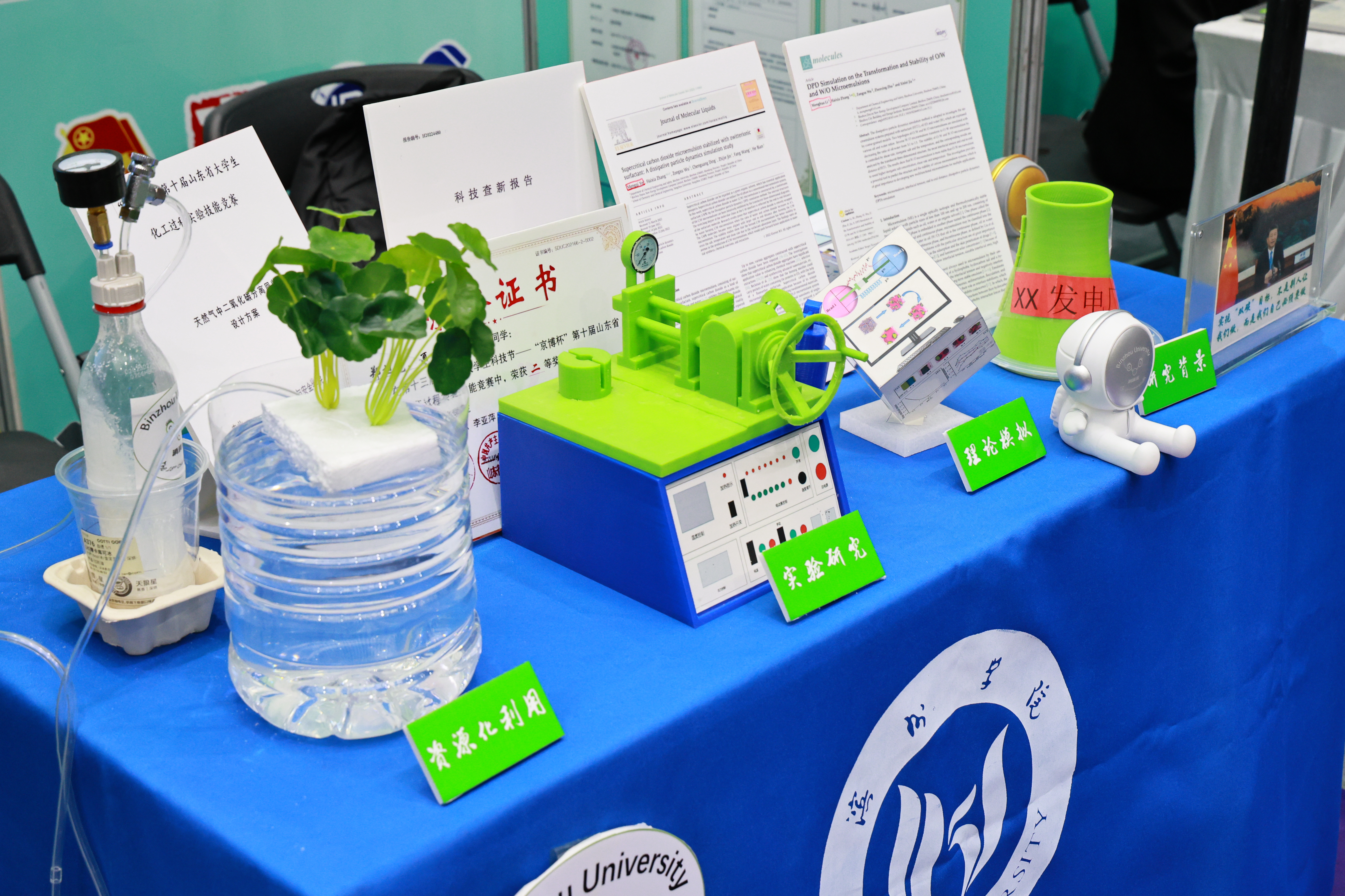 beat365官网参赛的自然科学类论文作品《变废为宝,碳为灌植-基于智能响应性微乳液体系的二氧化碳捕集系统研究》由beat365官网张海霞、王守龙、金志杰老师指导,叶梦绮等同学组建“O=C=O消消乐”团队参赛。该作品锚定习近平总书记的“双碳”计划,聚焦滨州地区企业多、碳排放量大等问题,构建了一种低成本、绿色高效的新型CO2捕集系统,且实现了捕集液的资源化利用。赛场上,beat365官网师生展现了“自强不息、守正出奇”的学校精神,经过现场质询、问辩评审等激烈角逐环节,一路过关斩将,在本届“挑战杯”赛事中荣获山东省一等奖!实现了beat365官网在挑战杯赛事中“自然科学类学术论文”组别的零突破。