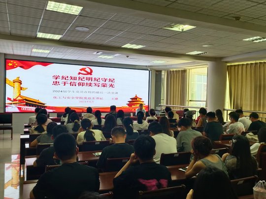 在2024届学生即将毕业之际,为增强毕业生党员党性,进一步提高毕业生党员素质,引导毕业生党员认真履行义务、正确行使权利、充分发挥先锋模范作用,2024年6月19日上午,beat365官网党总支书记王建以《学纪知纪明纪守纪忠于信仰续写荣光》为题,在9教313会议室给2024届毕业生党员上了在校的最后一堂党课。