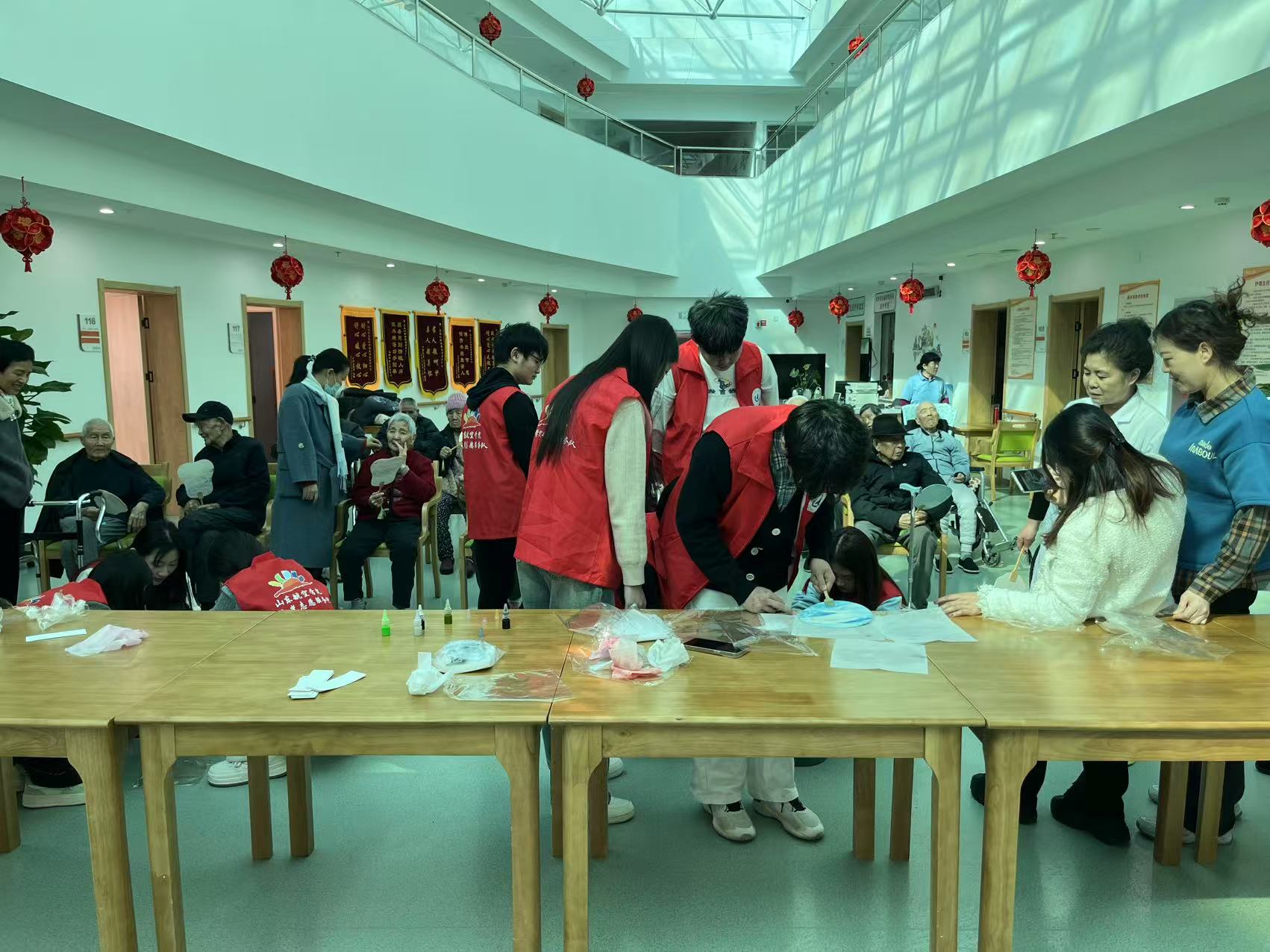 活动最后,全体志愿者与老人们手持漆扇作品合影留念,镜头记录下了灿烂的笑容与温情的瞬间。这场活动不仅为养老院增添了活力,也让志愿者们在实践中深化了对奉献精神的理解,为传承雷锋精神写下了生动的注脚。