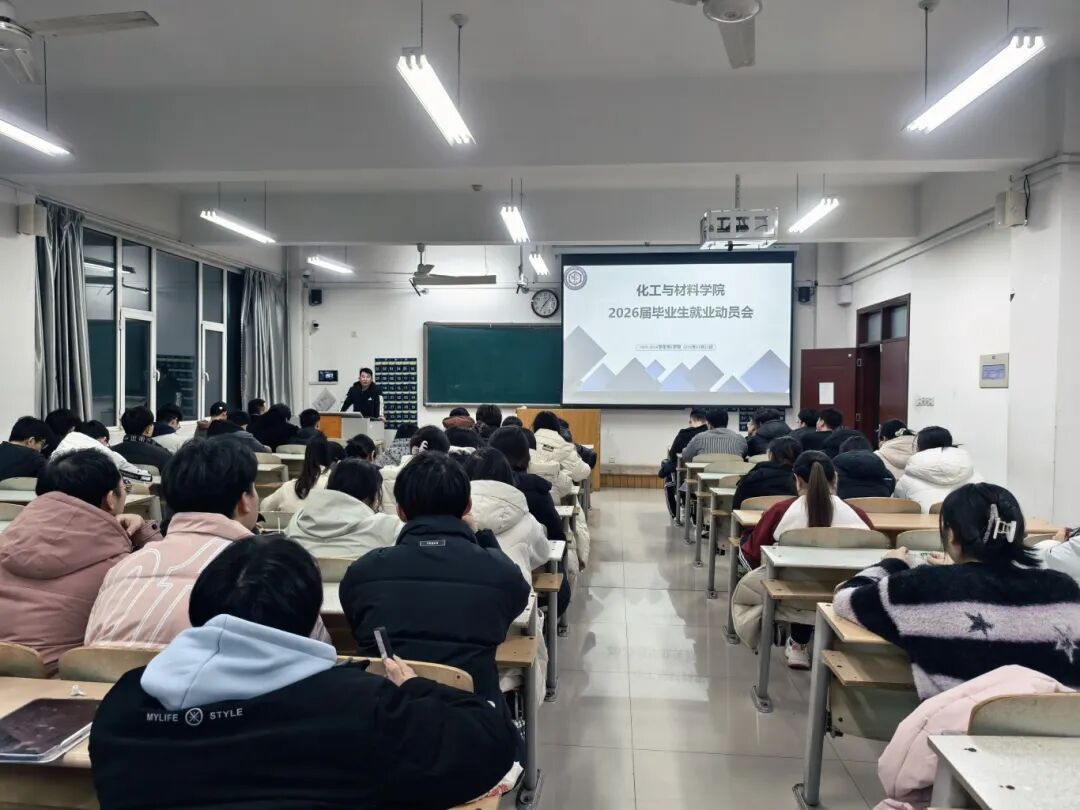 会上,商希礼作就业动员讲话。他深入分析了当前高校毕业生就业市场的机遇与挑战,强调在就业压力攀升的背景下,毕业生需树立多元就业观念,主动做好职业规划,积极对接各类发展机会。讲话指出,化工与材料类专业具备鲜明“硬科技”属性,在国家产业升级与战略发展中占据重要地位,无论选择企业就业、考研深造、自主创业还是基层服务,都要秉持积极心态与诚信准则,在不同赛道实现价值。