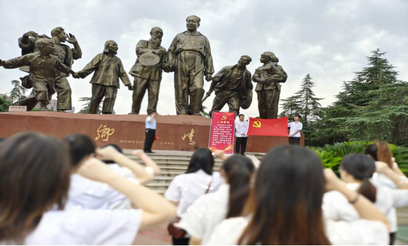 陶连洲领读誓词,全体预备党员跟读誓词,庄严宣誓:“我志愿加入中国共产党,拥护党的纲领……”整齐而坚定的声音回荡在广场上空。