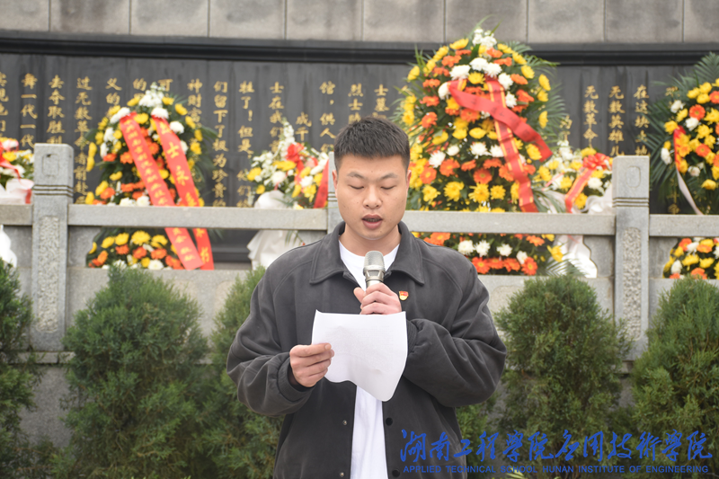 在庄严肃穆的烈士纪念碑前,全体肃立,齐声合唱《中华人民共和国国歌》,随后全体默哀三分钟并三鞠躬以表达对烈士最高敬意。退伍士兵电子信息2081班刘欢作为党员代表进行发言,他会把对革命先烈的敬仰之情化作勇毅前行、踔厉奋发的强大动力,不断传承红色基因血脉。黎娅带领全体党员重温入党誓词,她强调缅怀先烈不仅是缅怀他们的丰功伟绩,更重要的是发扬并传承他们的崇高精神。