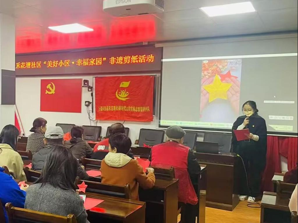 为加强党员同志们之间的交流,进一步学习和弘扬中华优秀传统文化,感受传统文化的独特魅力,增强民族自豪感与使命感,11月26日第五党支部组织了以“非遗剪纸蕴‘廉’情,红色基因永相传”为主题的党员实践活动。本次党员实践活动由澳门电子pg游戏官网第五党支部学生党员与禾花塘社区的居民共同参与。