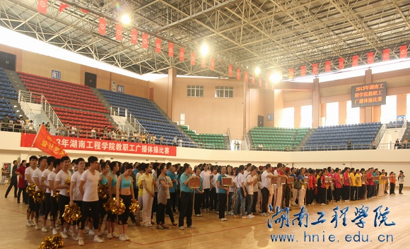 5月21日,澳门电子工会小组和工程训练中心、思政理论课部工会小组组成联队,参加2013年澳门电子pg游戏官网教职工第九套广播体操比赛。