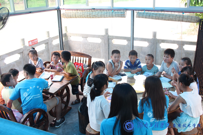 7月7日,“希望之光”社会实践活动团队来到新晃新村的第二天。团队成员们通过第一天与孩子们的相处与教学,吸引了更多的孩子来到实践地点上课。教学依然以分组形式进行,课程内容丰富,形式多样,课前队员们精心准备,课间孩子们积极参与。