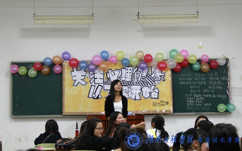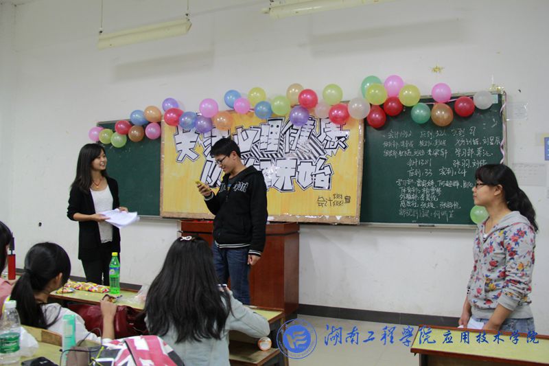 班会的活动多种多样,魔术、诗歌、散文、音乐、演唱,纷纷登场。主持人通过提问的方式开始了心理主题班会,问了一些心理的问题,并进行心理分析,宣传心理健康知识,提供了有效的方法来帮助同学们放松,舒缓压力,如用心法、豁达法、松弛法、平心法、冷静法、自脱法,以此来减轻压力。