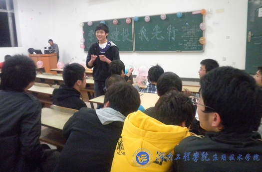 为促进各班级之间的交流与合作,各班自由组合开展活动。为了搞好此次团日活动,各班都准备得十分充分,精美而有创意的海报,艺术地表达了团日活动的主题;丰富多彩的节目,让大家领略到了学风建设的重要性,激发了大家的学风意识。活动中,很多班级都作了学风建设的主题讨论,并邀请班主任参加,在讨论中,各班同学更是热情饱满,踊跃发言,积极地表达了自己对于学风建设的看法和建议。除此之外,有的同学以演讲的方式说出了身边存在的不良学风问题;有的同学则以诗歌朗诵的方式诵出了对未来学风建设的设想;有的同学更是用歌声和话剧演绎出了对学风建设的理解和认识。