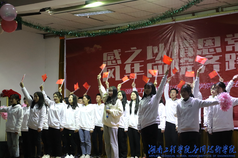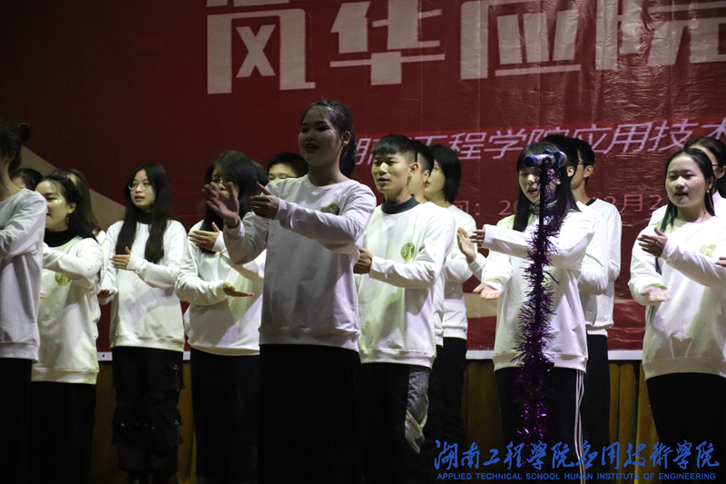 第一篇章:筑梦青春。青年是祖国的未来,民族的希望。由团总支及社联干部带来的舞蹈《天天向上》点燃了同学们的热情,引来阵阵掌声,青春就是要不顾一切,敢做敢拼。市场营销1981班,产品设计1981班,国际贸易1981班分别带来的合唱《阳光下你我同行》,他们的表演各具特色,相同的歌曲,却给同学们带了不同的感受。由学生会干部带来的情景剧《校园贷》,他们有趣的台词,贴合校园生活的剧情,欢声笑语之余让同学们了解到校园贷的危害。