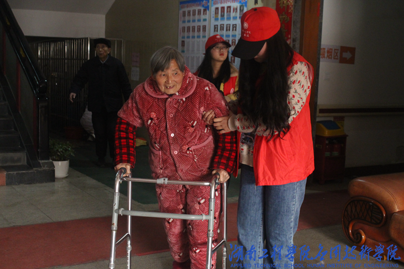 下午14:00,志愿者准时在校门口集合出发,怀着兴奋激动的心情踏上了去敬老院的道路。刚到达敬老院门口就有眼尖的老人看见了志愿者团队,老人们开心的呼喊着志愿者们的名字,老人们的热情是让志愿者们感到更加开心。志愿者们随老人们进入了院里,按照事先的安排为老人进行了节目表演,歌曲《军中绿花》、舞蹈表演赢得了老人们阵阵掌声,之后志愿者曾彪带来的花鼓戏《补锅》更是逗得老人们哈哈大笑。