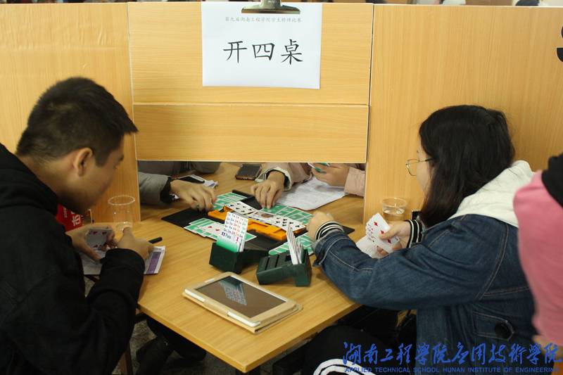 12月1日下午,前三轮的比赛打响。在应院一队和纺织二队的比拼中,澳门电子选手在第二副牌中灵活使用“阻击”叫牌技巧,成功阻止对手得分。在后续的出牌中,应院一队巧用“飞牌”,以本队扣除100分的代价阻挠对手获得600分的机会以力挽狂澜,险胜对手。团体赛结束,长沙学院二队以64.44的高分摘得前三轮比赛的桂冠,湖南大学二队以60.94分稳居第二,澳门电子一队获得第三名。
