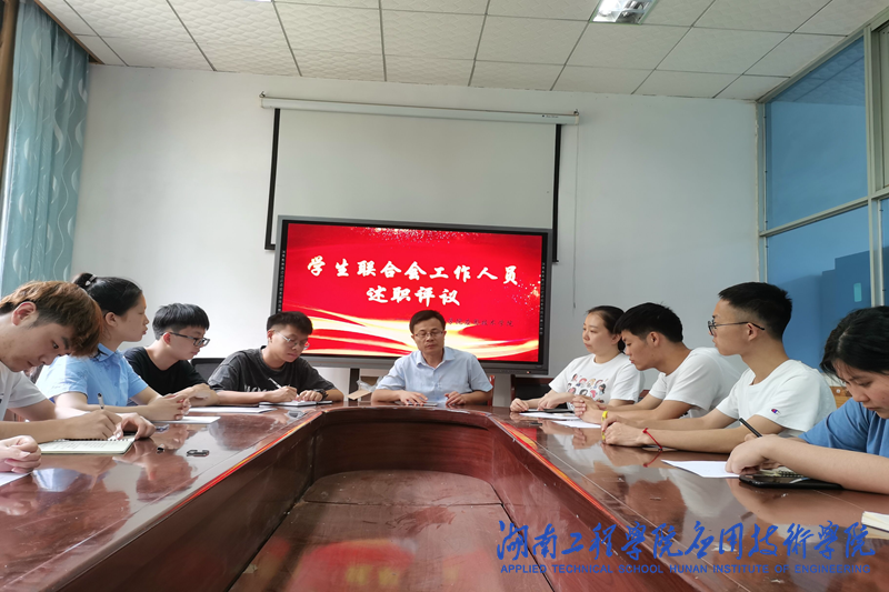 澳门电子于6月25日12:30在红楼117会议室进行学生联合会工作人员述职评议。党委副书记陶连洲、团总支书记周舟妤栎、主席团成员及各部门负责人参加会议。