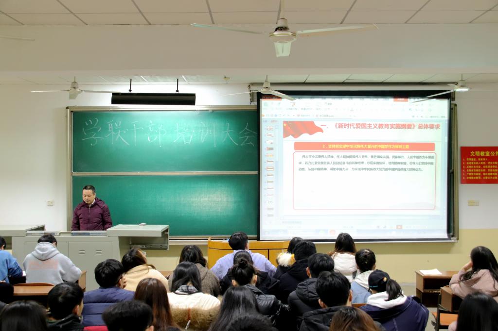 刘红石给学联干部讲课《新时代爱国主义教育实施纲要》。他带领大家一起认真学习了《新时代爱国主义教育实施纲要》,他要求广大学生干部要认真学习、自觉遵守、切实贯彻、坚决维护《新时代爱国主义教育实施纲要》。他指出大学生要坚定理想信念,要热爱党、热爱社会主义祖国、热爱人民,要把自己的理想目标与国家发展相结合,勤勤恳恳、努力奋斗,不忘初心,争做新时代有志有为的好青年。