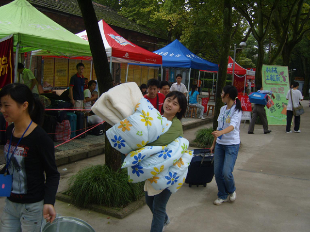 因为专业分布的缘故,南校区的女生本来就少,但这却丝毫不能减少她们对迎新工作的热情,电子信息0681的雷素桃是其中最闪眼的同学之一。身为接待Ⅰ组阻员的雷素桃,自然少不了帮助新同学引路,扛行李等。这样来来回回多少次,让我们似乎忘了她是一个柔弱的女生。 “迎新志愿者就要不怕苦,不怕累,我们要全心全意地投入到迎新活动中去。”这是雷素桃告诉自己的话,也许下面的这一小插曲更能生动的诠释她的这句话。