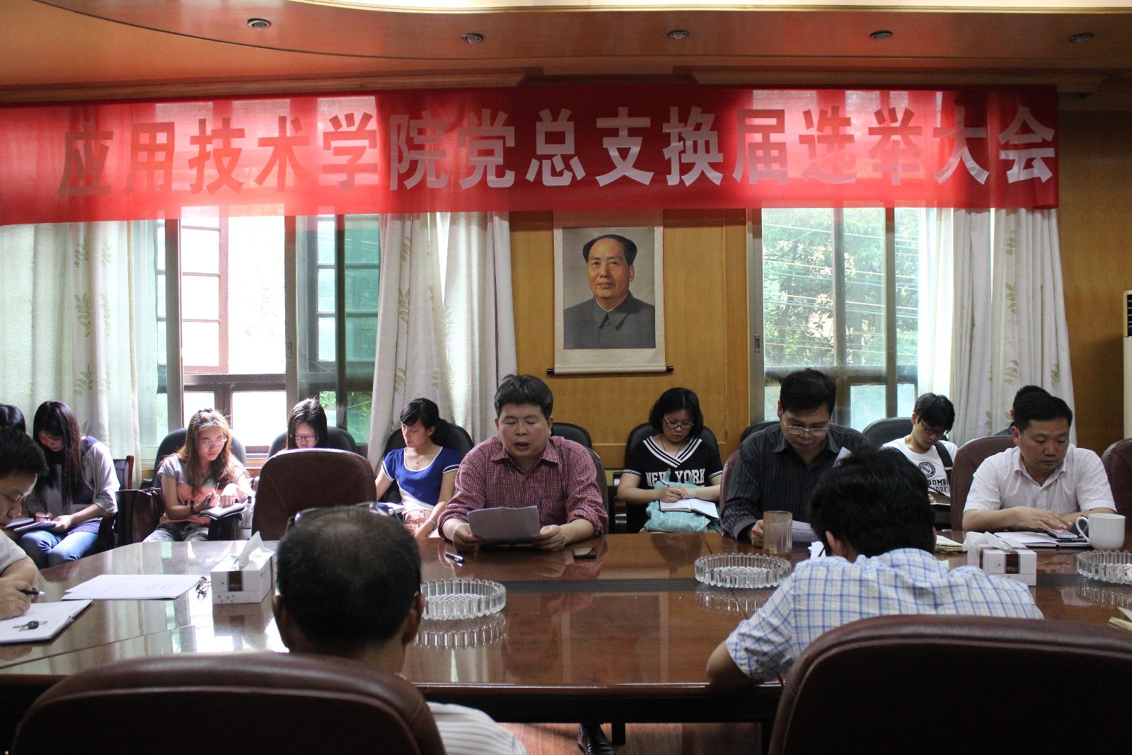 5月25日,下午3点在南校区红楼会议室举行澳门电子pg游戏官网党员大会,进行党总支换届选举。澳门电子党总支书记李爱国、院长李光中、党总支副书记徐粤宇、副院长梁开健,胡武平,全体教职工党员及学生党员代表参加大会。
