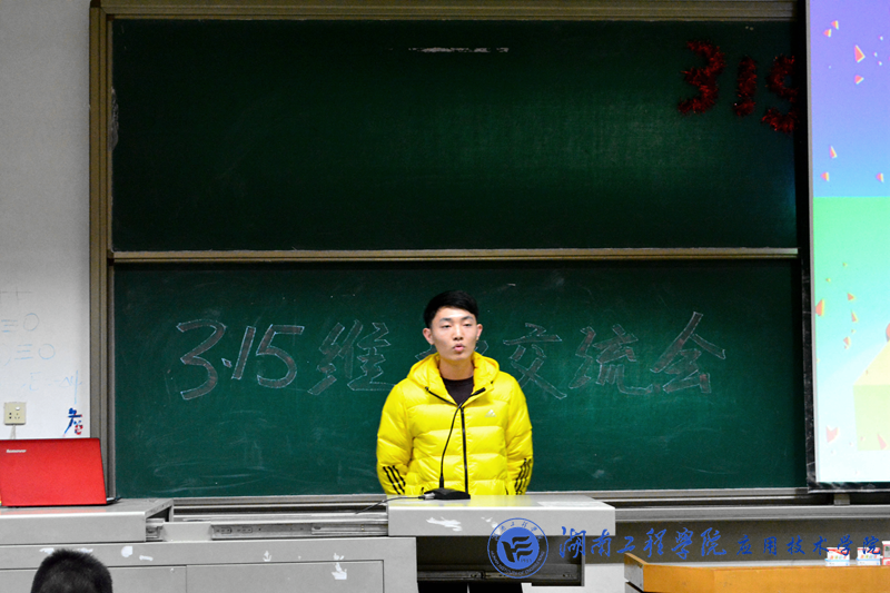 3月20日晚上7:30,澳门电子团总支学生会维权部首届维权交流会在南校区第一教学楼303教室举行。此次交流会的主题是:“315国际消费者权益日 用诚信力量为你服务。”团总支学生会副主席陈浩、纪检部部长申志豪、文娱部部长欧阳光、各班班委代表参加了此次交流会,维权部部长周文龙担任主讲人。