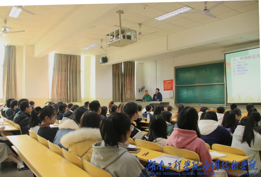 为了提高澳门电子学生的安全防范意识,12月12日12:30、19:00,澳门电子大一、大二各班级于第一教学楼举行了“辩传销·明是非·净校园”的主题团日活动。