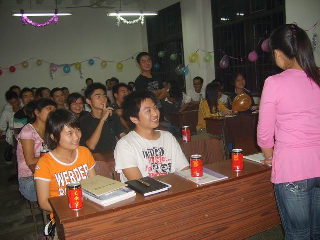 走进该班活动所在地就被其特意妆扮的现场所吸引,全班同学整齐安静地等待交流会的开始。七点整,在该班班导李东成的祝福声中,交流会正式开始。来自自动化0581、0681班的多名学长陆续上台,给刚入象牙塔的90后们带来自己多年大学学习生活经验系数道来,王刚、邓海轮以一名大四毕业生的身份给在座的学弟学妹们带来精彩的讲述。王刚说:“大学生就应该像男人,而非男生”博得在场一片喝彩,一次性通过英语四六级的邓海轮则将自己学习英语的方法教给每位新生,作为大三的曾健、陈晓雷更多的自己身边的学习生活中的问题给学弟学妹们分享、讲述,并回答场下同学们各式各样的问题,夺得欢快的笑声和热烈的掌声,解答新生心中各种难题和学弟学妹们共度一个难忘的夜晚。