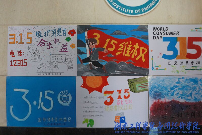 各班级制作了形式多样的消费维权宣传作品,营造了浓厚的宣传氛围。各班级将制作的海报在第一教学楼大厅进行了展示,海报宣传主题明确,“打假”、“诚信”、“消费者权益”等字样惹人注目,引来不少学生驻足观看。