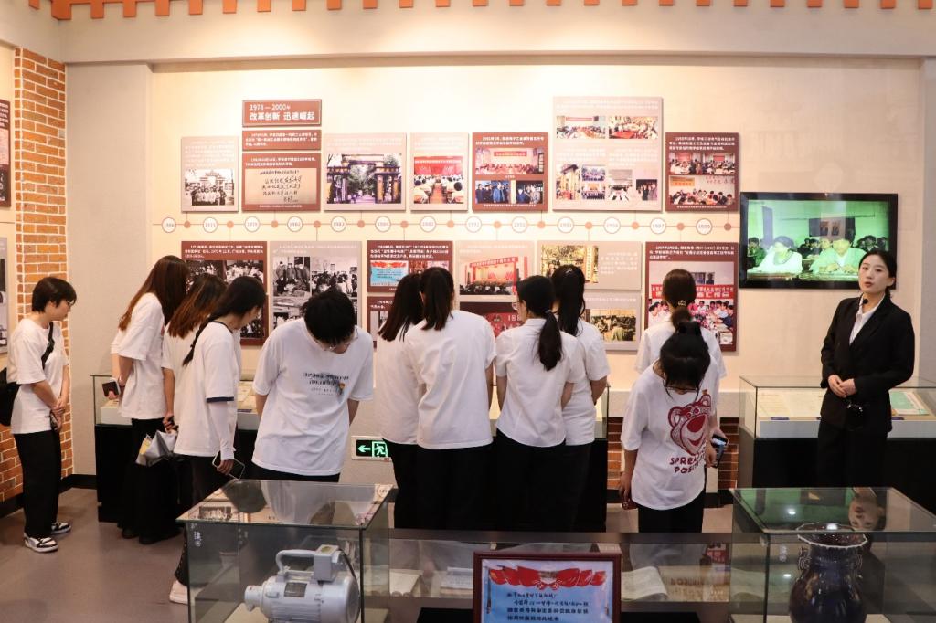 一走进校史馆,同学们被一件件物品、图片所震撼。随着讲解员的讲解,一件件物品、一幅幅图片仿佛有了生命,穿越历史时空与每一位毕业生进行对话,诉说着学校厚重的历史积淀、艰辛的办学历程、丰硕的办学成果和奋发的进取精神。同学们聚精会神地倾听着讲解,不时驻足仔细观看每一帧照片,轻声交流着内心的感悟。