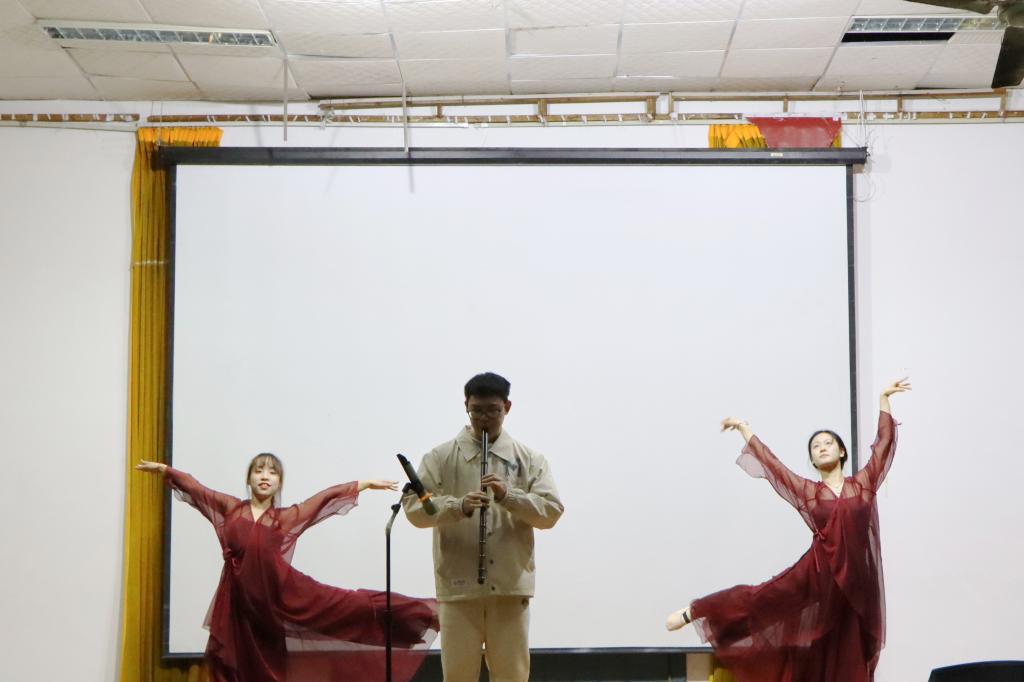 比赛在古风曲艺社带来的《山鬼》中拉开帷幕,身着殷红色纱裙的舞者们随着长笛的乐声翩翩起舞,婀娜多姿,他们优美的旋律和独特的舞蹈动作将观众带入了一个神秘的古代世界,让人仿佛置身其中,尽显中国古典文化底蕴。大合唱《夜空中最亮的星》《无名之辈》唱出了青少年的热血无畏与年少轻狂,将观众的心灵深处触动,充满了对美好未来的向往和憧憬。朗诵节目《我喜欢红色》朗诵者吐字清晰、声音洪亮、抑扬顿挫,传递了对祖国的热爱和对革命英雄先烈的缅怀。