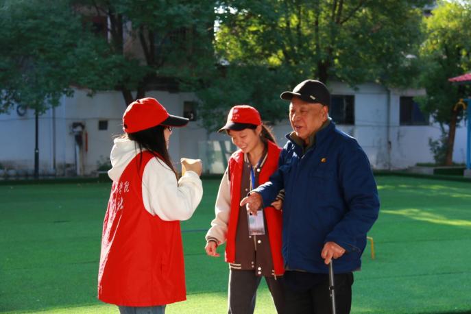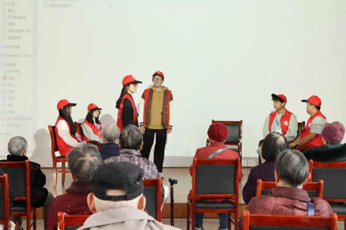志愿者们轻盈的步伐踏入敬老院,映入眼帘的是老人们聚在一起聊天,志愿者们迅速融入其中,与老人们亲切交谈,并热情的邀请他们观看即将开始的演出。志愿者们细心帮助着老人们,他们或搀扶着老人稳步前行,或轻轻推动轮椅缓缓前行,老人们的脸上洋溢着期待的笑容,陆续来到大厅就座。
