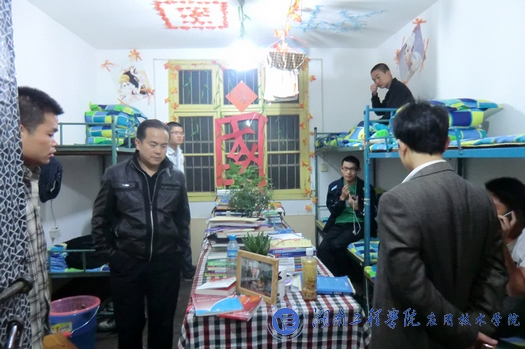 检查组就寝室安全、内务卫生、大功率电器的使用等问题进行了检查,并与同学进行了亲切的交流。每到一间寝室,检查成员强调秋冬季节请注意用电安全,注意财产安全,加强宿舍内务整理,并嘱咐同学们根据天气转变情况添加衣服,一字一句让在场的同学们都倍感温暖和感动。学院党总支书记李宏祥反复提醒大家,现在天气越来越冷了,同学们不要在宿舍里烧火取暖及使用大功率电器,如有违者,学校将按规章制度予以处理。检查成员还特别询问了大一的同学们是否已习惯了大学生活,并鼓励同学们在大学期间树立远大的理想,刻苦学习,学有所成。
