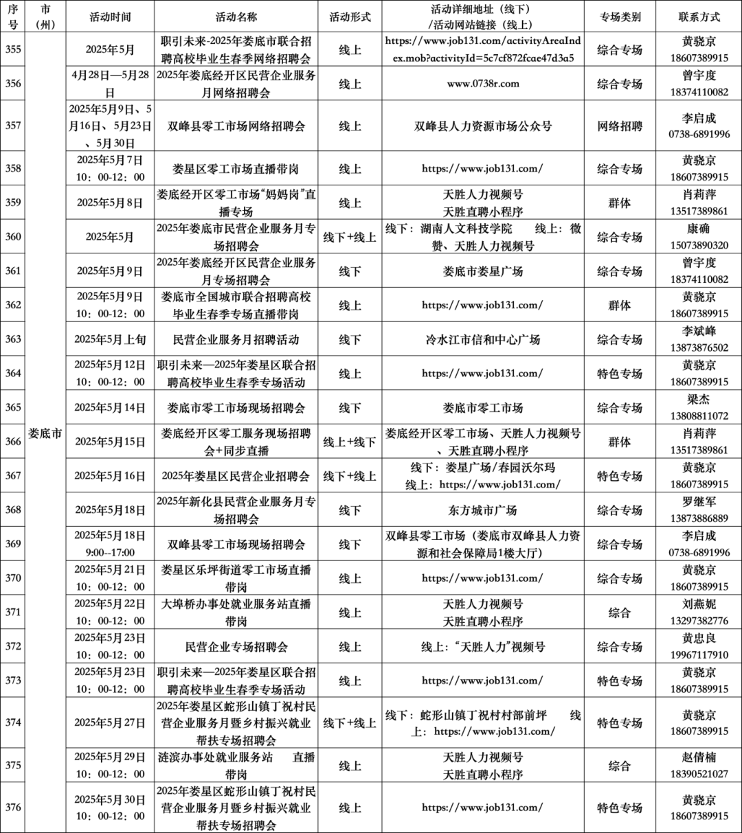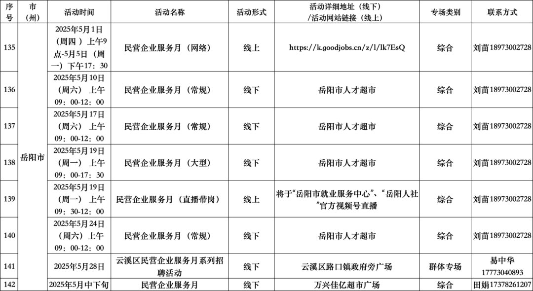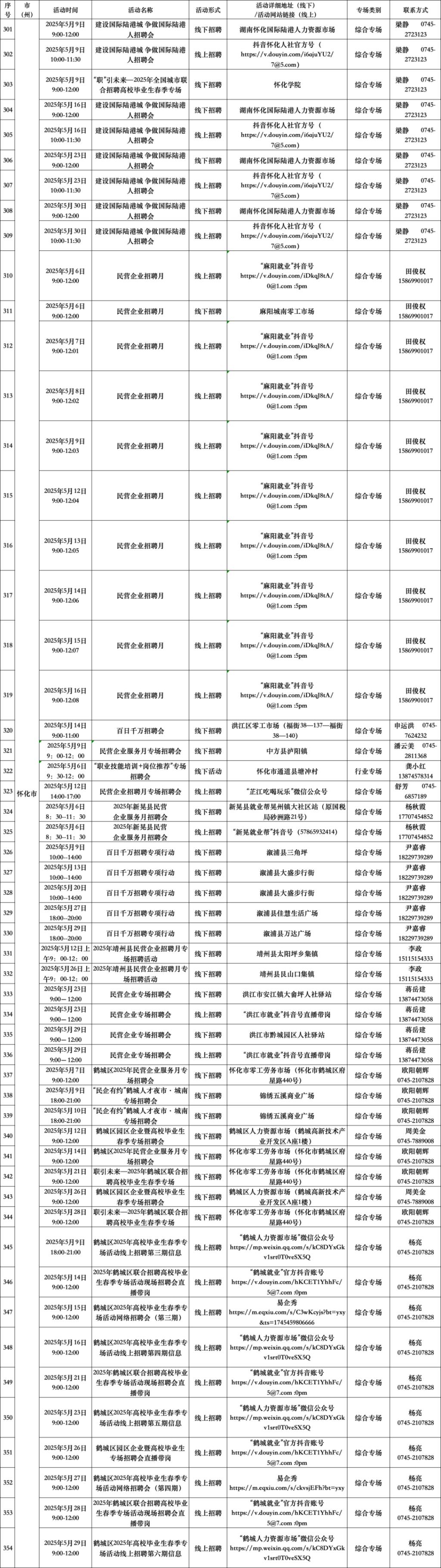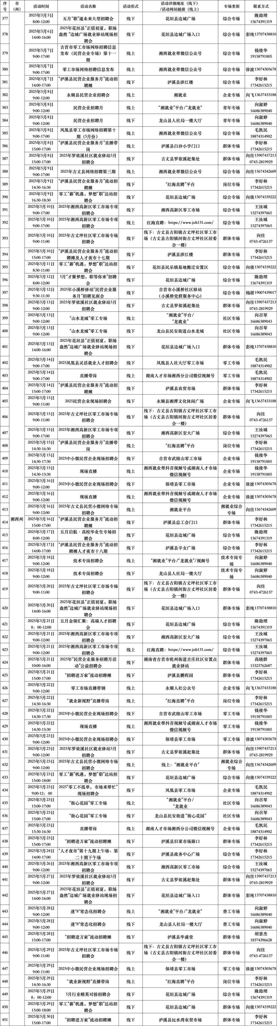 扫码查看“5月全省公共招聘活动预告信息表”(具体活动安排按实际举办地为准。)