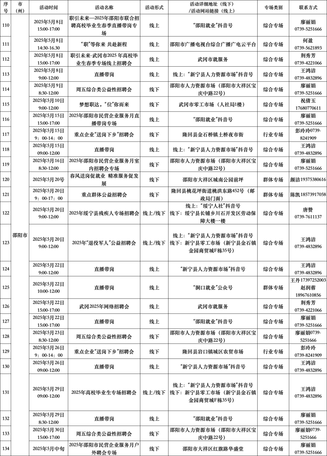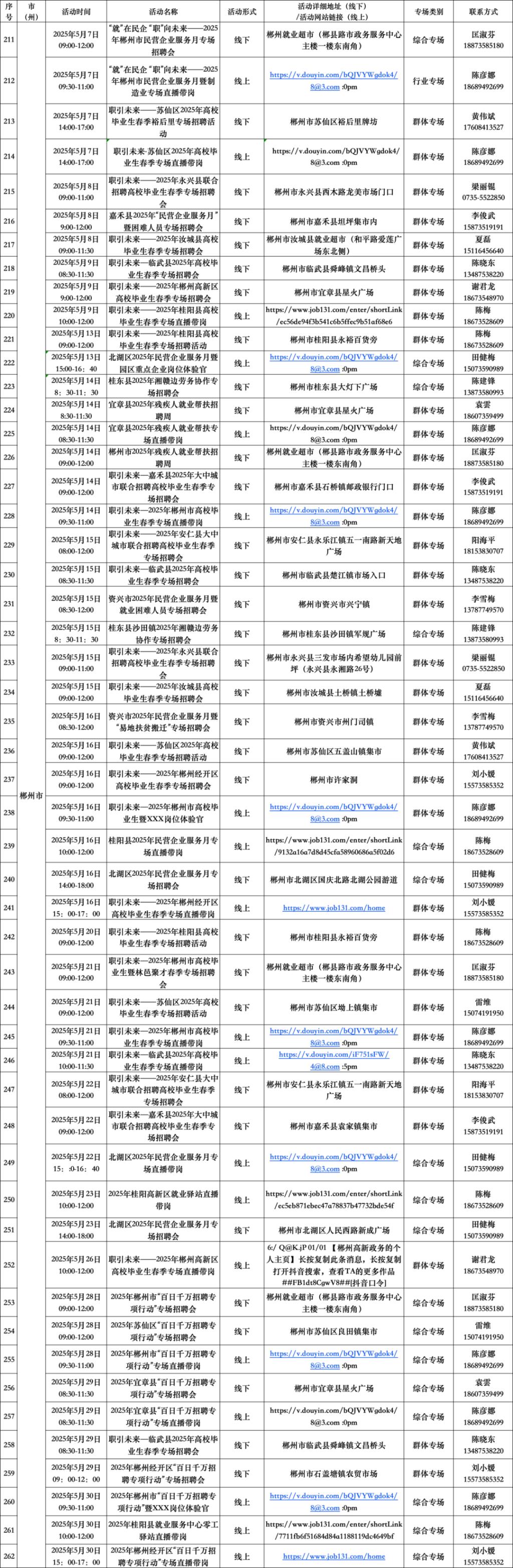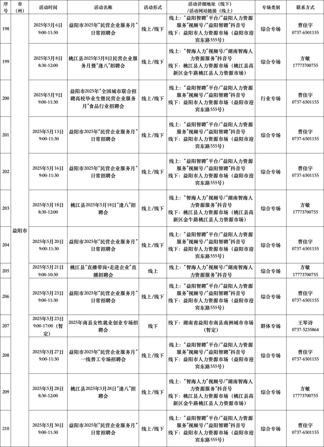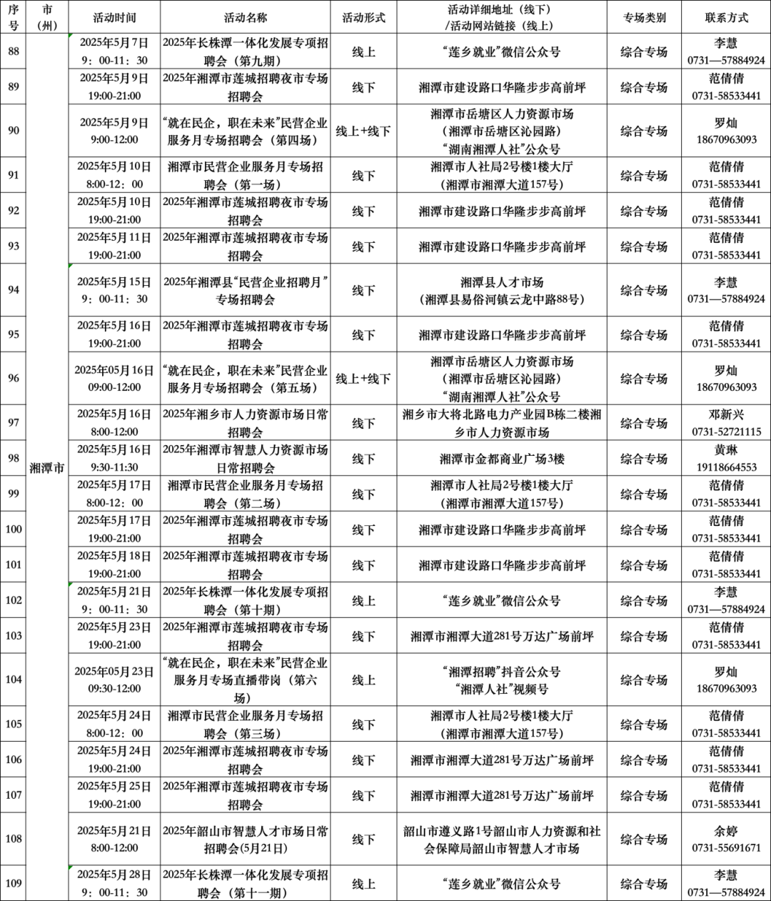 扫码查看“5月全省公共招聘活动预告信息表”(具体活动安排按实际举办地为准。)