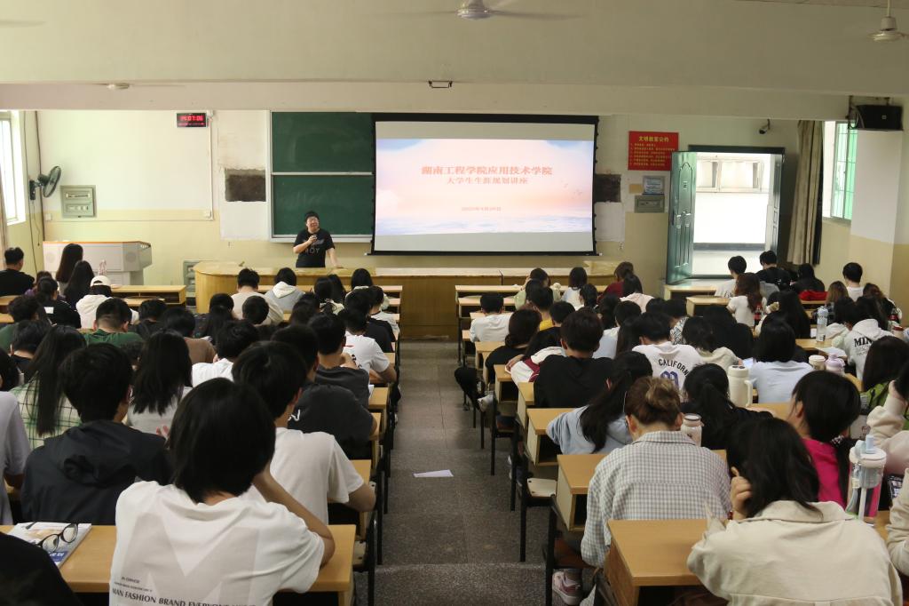428日,澳门电子“规划青春,点亮未来”大学生生涯规划讲座在第一教学楼213教室开讲。招生就业办公室主任谢丽娟老师为主讲人,2025届毕业生朱理杰(土木工程专业)和李瑶(人力资源专业)参与分享个人规划经验。