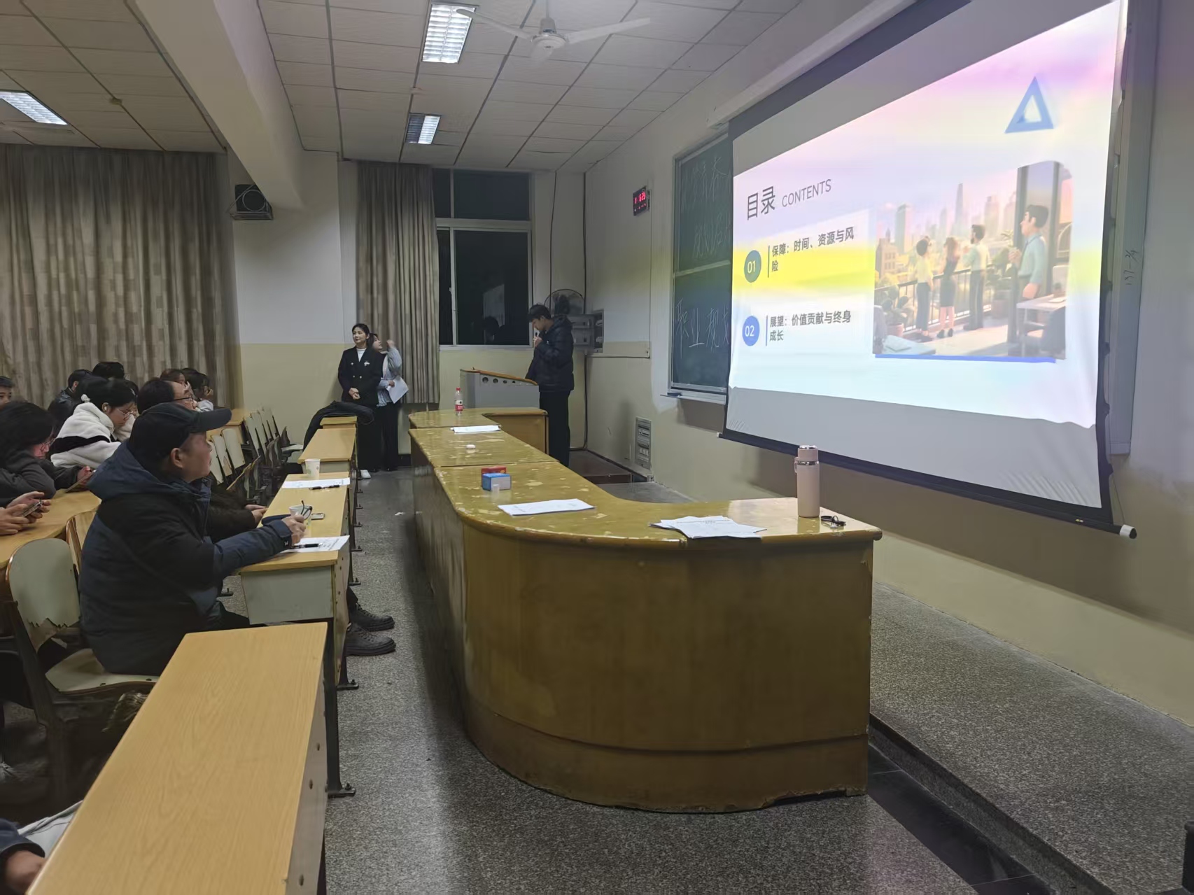 1月4日晚,澳门电子大学生职业规划大赛在第一教学楼213教室举行。本次赛事聚焦学生职业发展规划,以“筑梦青春志在四方,规划启航职引未来”为主题,特邀澳门电子pg游戏官网刘红石教授、商学院廖文军教授担任评委,为参赛选手的职业规划提供专业指导。