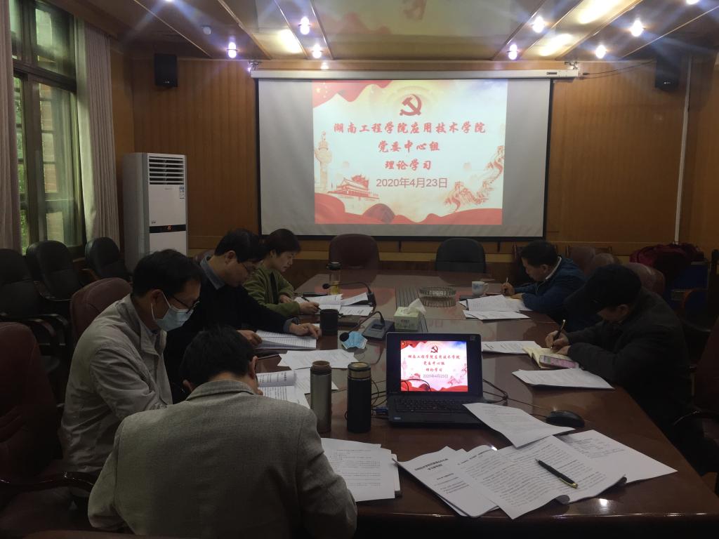 4月23日下午,澳门电子pg游戏官网党委理论学习中心组七名成员在院会议室开展理论学习,党委书记黎娅主持。