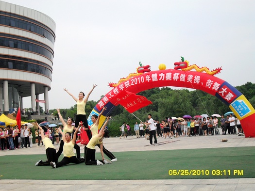 5月25日下午2:30,澳门电子pg游戏官网2010年健力美杯健美操、街舞大赛在新校区教学楼前坪广场隆重开展。此次大赛由共青团澳门电子pg游戏官网委员会、澳门电子pg游戏官网体育教学部主办,澳门电子pg游戏官网社团联合会健美操协会承办。校团委书记张小刚致词并宣布比赛正式开始。