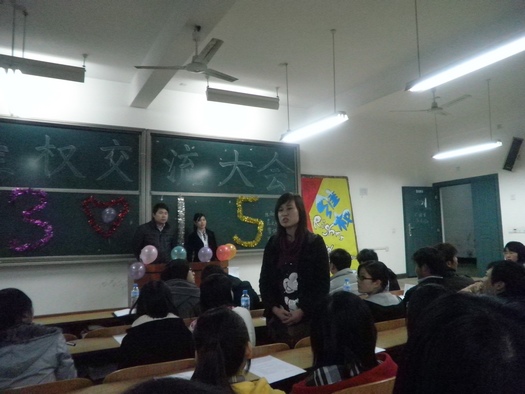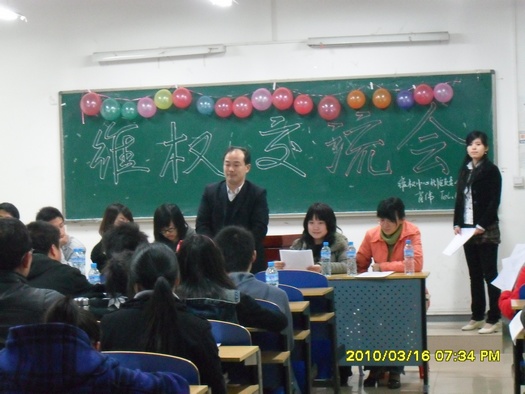维权交流大会第三场在南校区举行。参加会议的有学生工作部胡爱明老师、郭文辉老师及团总支、学生会、新闻通讯社各部门干部、各班班长、团支书和班级代表。
