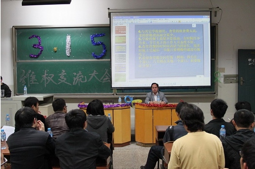 在这次权益交流会上,同学们各抒己见,纷纷提出了关乎自身权益的问题,会场气氛相当活跃,同学们的维权意识也在无形之中得到了提高。