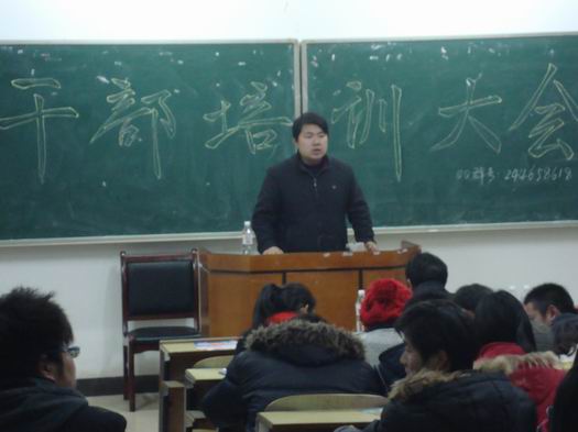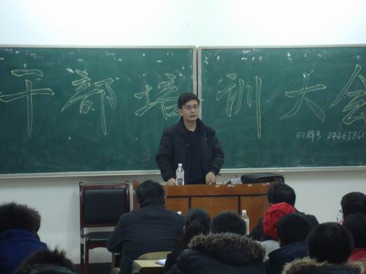 1月18日晚7:00,澳门电子第八届团总支、学生会以及第二届学生新闻通讯社第一次干部培训大会在主校区(新)教学楼B-106举行,成平副书记及团总支书记缪智文老师、学生工作部辅导员陶连洲老师和娄申老师。