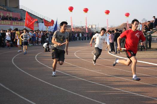 11月22日下午,运动会开始的第一天,在男子4x400米的预赛中,澳门电子选手以第一名闯进决赛。然而,在大家为胜利而欢呼雀跃时候,也有人在议论这场比赛的“紧张”之处,那就是来自物流0782班的唐旭同学在右脚鞋子被踩掉的情况下,不慌不忙继续他的第四棒,直至整队获得第一。
