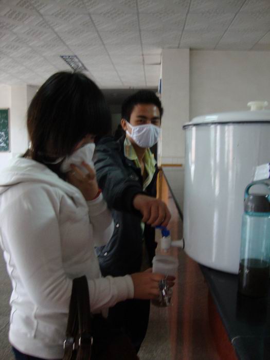 11月10日清晨,成平副书记及团总支、学生会干部干事在主校区(新)EF栋宿舍大厅候命,进行轮流值班工作。按照责任到班、具体到人的防控要求,严格落实防甲流制度,不厌其烦的督促、提醒过往的同学随时带口罩。同时,澳门电子还在宿舍楼大厅设置了免费发放中药点,通过药物来提高大家身体的抵抗力。