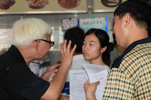 为了积极配合各部门工作,记者们也放下了手中的笔记本开始帮忙,引导新生们前往各站点办理报到注册手续。在一食堂二楼的接待处,记者发现了一位非常亲切的老爷爷在为新生们提供咨询服务,那一头白发在人群中显得格外醒目。记者也在老爷爷的帮助下为新生办理完了入学手续,与此同时,记者怀着好奇的心情对那位热情的老年工作者进行了采访。