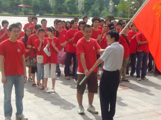 7月5日上午9:00,澳门电子pg游戏官网2009年大学生暑期“三下乡”社会实践活动授旗仪式在主校区教学楼前坪举行。学校副校长宁立伟、校团委书记张小刚、校团委全体老师以及80名服务团成员参加了授旗仪式。