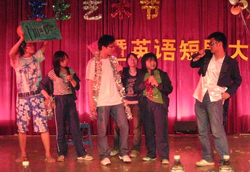 话剧表演无疑是此次晚会的重点。参加此次活动的话剧有《大话西游》、《孔雀东南飞》、《泰坦尼克号》、 《灰王子》、《皇帝的新衣》和《All in vain》。这些话剧都实力强大、各有千秋,是经过多次比赛、层层选拔而胜出的优秀之作。同学们在这些话剧原有的故事情节上加入了大胆、新颖的设计和改变,使内容变得十分新鲜和幽默诙谐,加上大家流畅的口语,投入的演出,使观众仿佛身临其境,《大话西游》中唐僧的一曲《Only you》更是笑翻全场,博得了台下经久不息的掌声和喝彩。