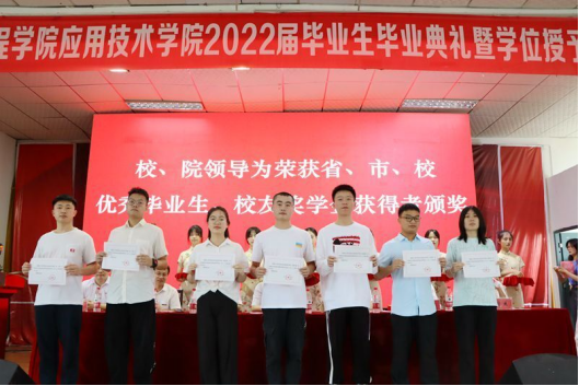 四年拼搏,终有所获。黎娅宣读《关于表彰2022届省、市、校优秀毕业生的决定》,34人被授予省级优秀毕业生,29人被授予市级优秀毕业生,92人被授予校级优秀毕业生。陶连洲宣读《关于表彰澳门电子pg游戏官网校友奖学金获得者的决定》,26人获校友奖学金。现场领导为优秀毕业生和校友奖学金获得者颁发荣誉证书。