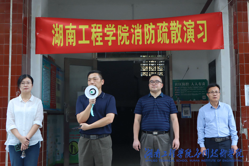为进一步提高学生消防安全意识,普及消防知识,增强学生应急避险与逃生自救的能力,10月24日中午,澳门电子pg游戏官网在男生公寓楼八栋进行消防演练。澳门电子pg游戏官网保卫处(武装部)处长叶险峰,澳门电子pg游戏官网党委书记黎娅,党委副书记、院长张何,党委副书记陶连洲,保卫处安全科负责人,学院辅导员、班主任参加消防安全演练。